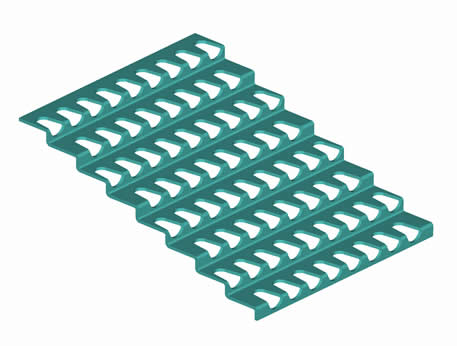 階梯篩板結構特點: 階梯篩板的篩框采用輕鋼骨架,篩面采用優質鋼板,通過沖壓、折彎等多道工序加工而成。階梯篩板不但有較好的耐磨性和較高的韌性,其突出的優點是其篩孔為非平面篩孔,經過特殊設計的篩孔可以完全消除物料堵孔現象,生產效率高,分級效果好,具有廣泛的實用性。采用階梯篩板,可大大降低每個工作日后的振動篩面清理工作量。 主要適用于原煤分級(25mm以上)。